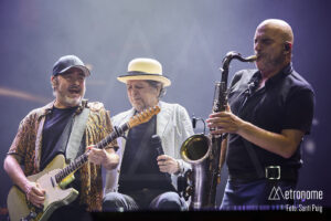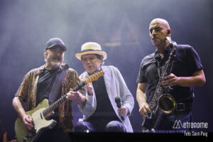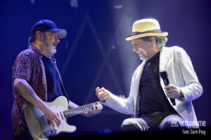 El tramo final del concierto llegó encadenando clásicos: “Noches de Boda” desembocó en “Y nos Dieron las Diez”, con la que aparentemente cerraba la noche tras algo más de hora y media de música y poesía. Pero Barcelona no estaba dispuesta a dejarlo marchar tan pronto: tras un breve receso, Sabina y los suyos regresaron para ofrecer varios bises. Entre ellos, la versión que interpretó el guitarrista y el teclista Antonio García de Diego del mítico tema “La canción más hermosa del mundo”, mientras Sabina le observaba tras el escenario.