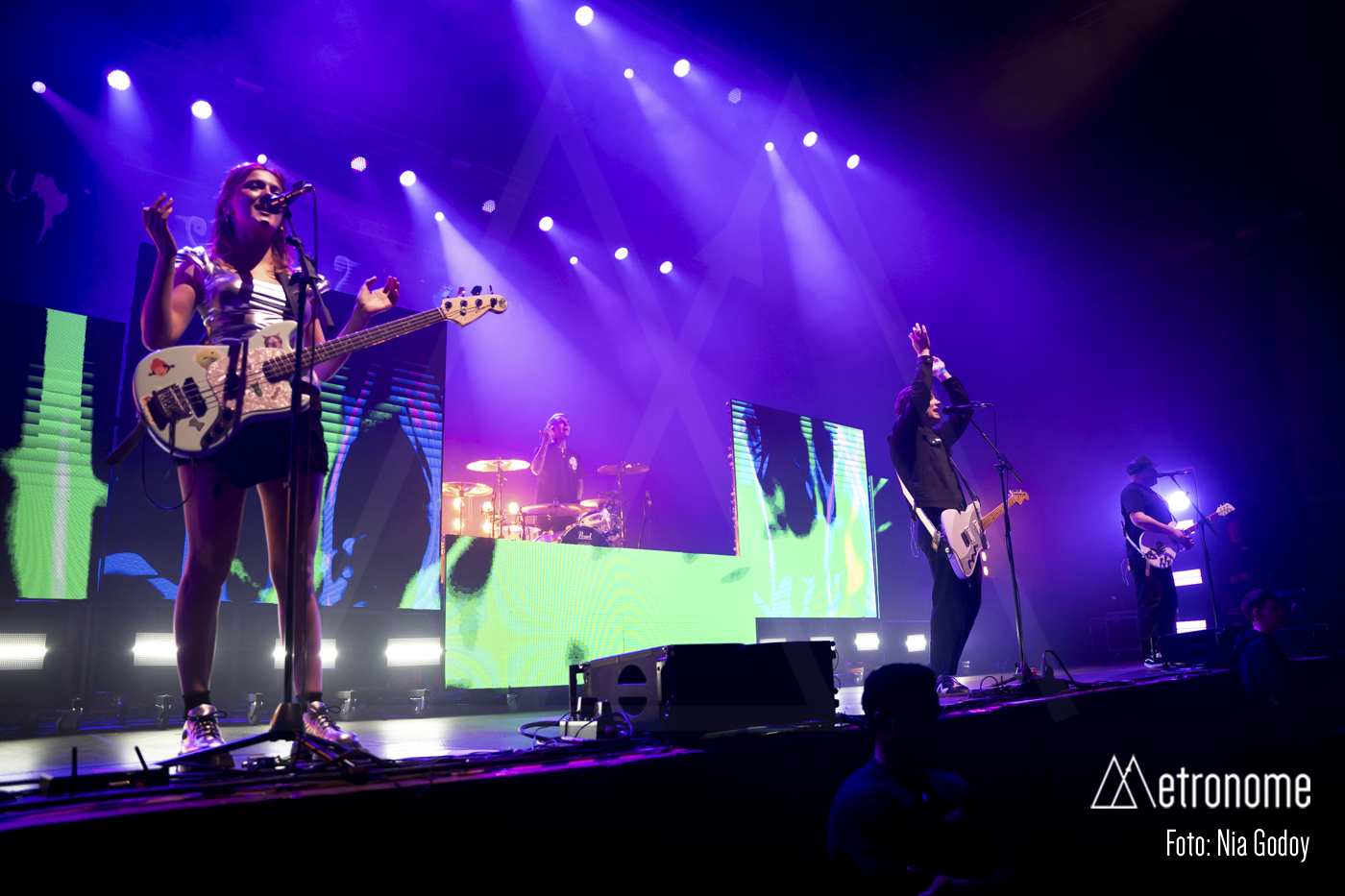 El concierto arrancó puntual a las 21:00 con una intro en forma de noticiero ficticio que alertaba de una invasión alienígena, marcando el hilo conductor de la noche y anticipando la estética del próximo disco, previsto para el 29 de mayo. Nada más terminar la proyección, una potente entrada de guitarras y batería desató la euforia general, confirmando que lo que venía por delante era, ante todo, una auténtica fiesta.