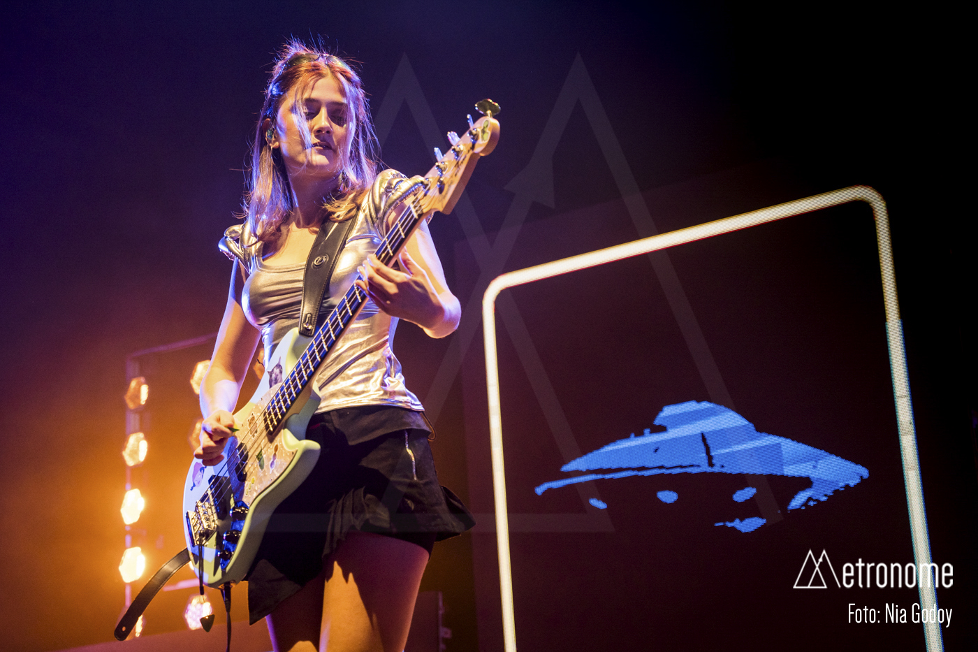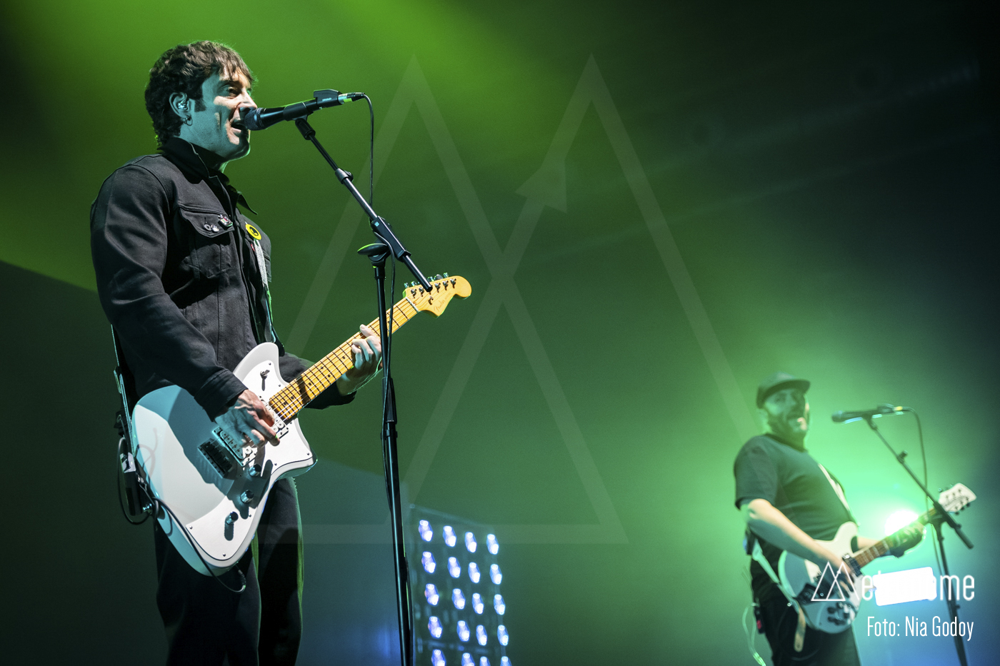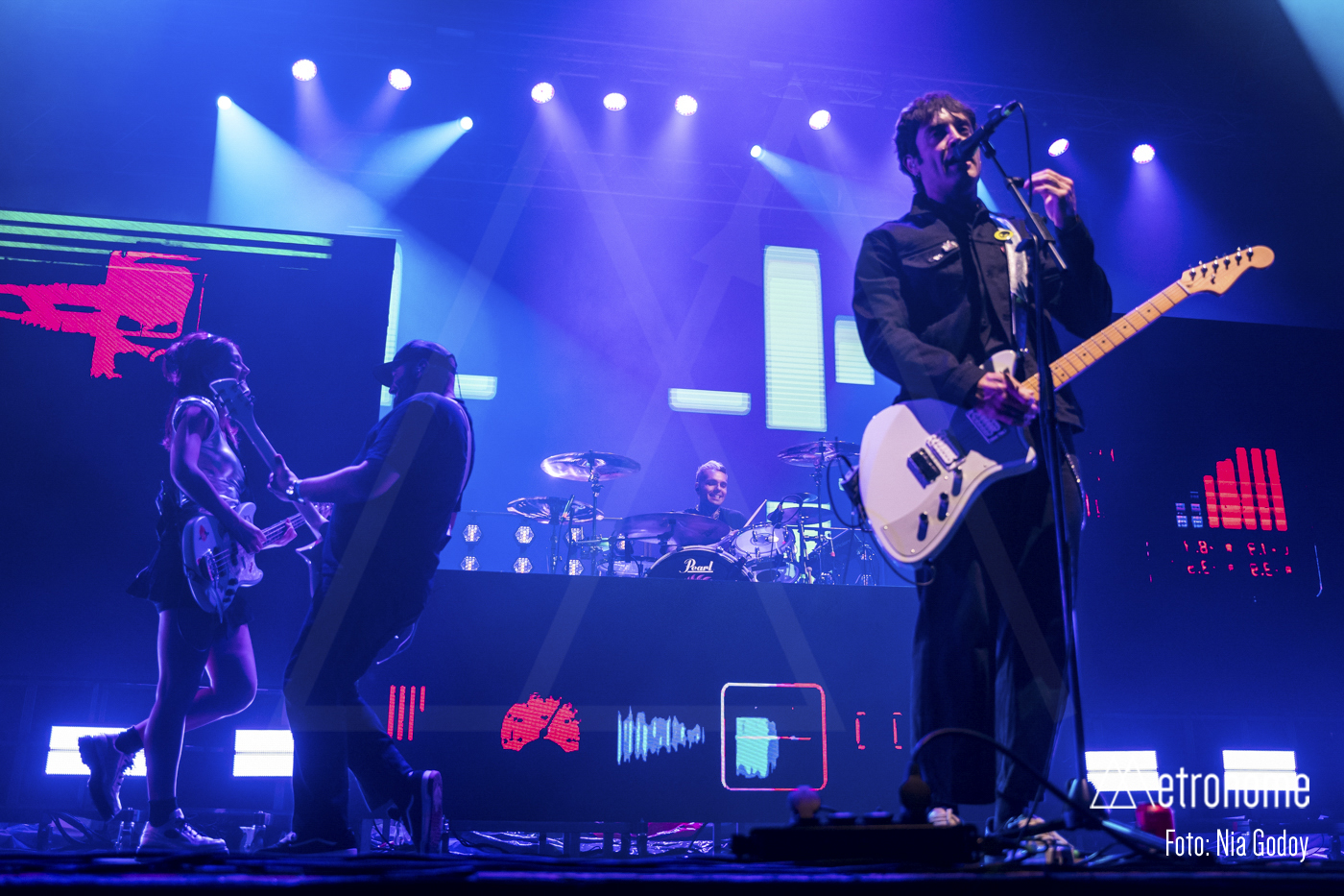 El concierto arrancó puntual a las 21:00 con una intro en forma de noticiero ficticio que alertaba de una invasión alienígena, marcando el hilo conductor de la noche y anticipando la estética del próximo disco, previsto para el 29 de mayo. Nada más terminar la proyección, una potente entrada de guitarras y batería desató la euforia general, confirmando que lo que venía por delante era, ante todo, una auténtica fiesta.