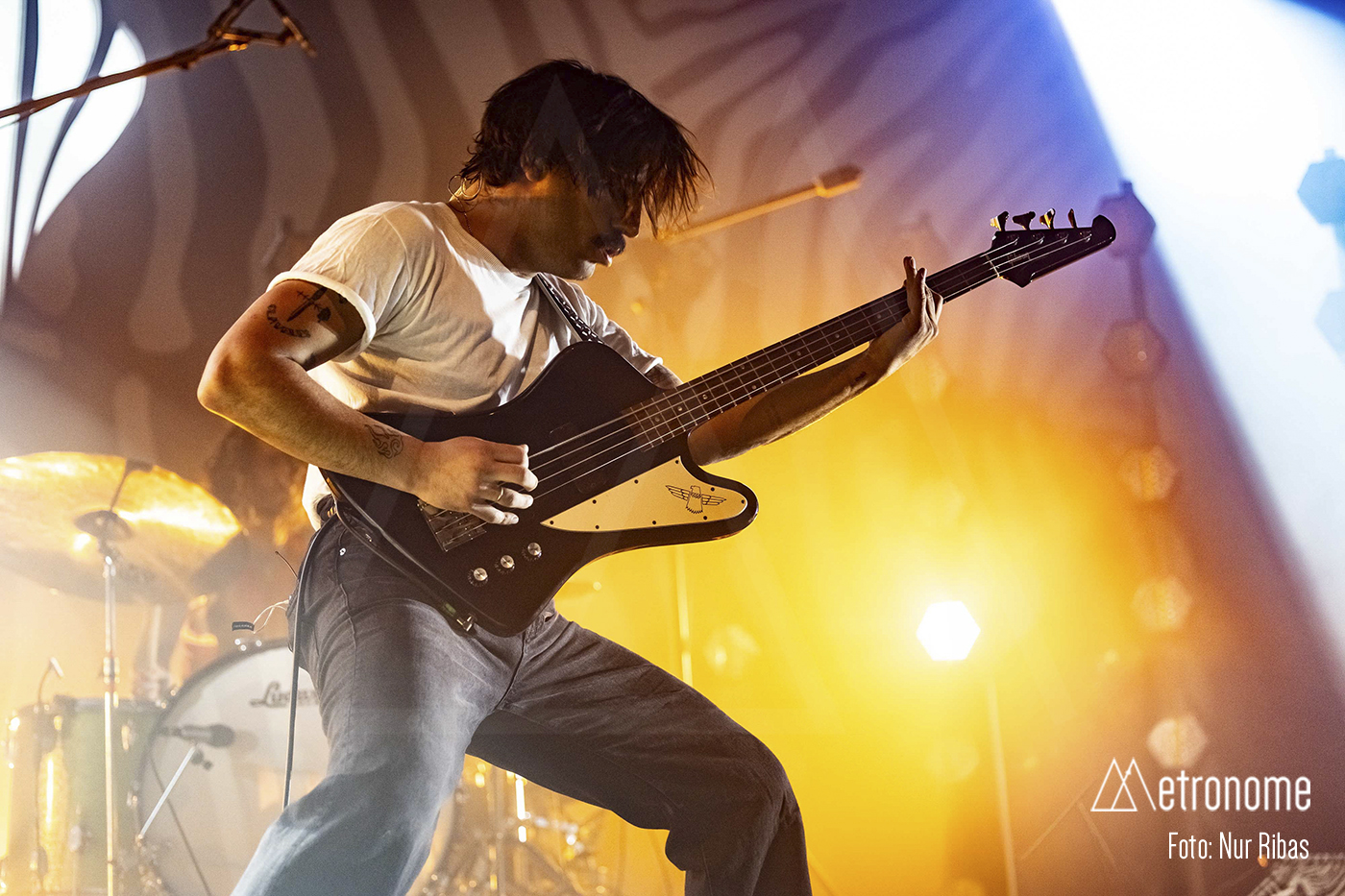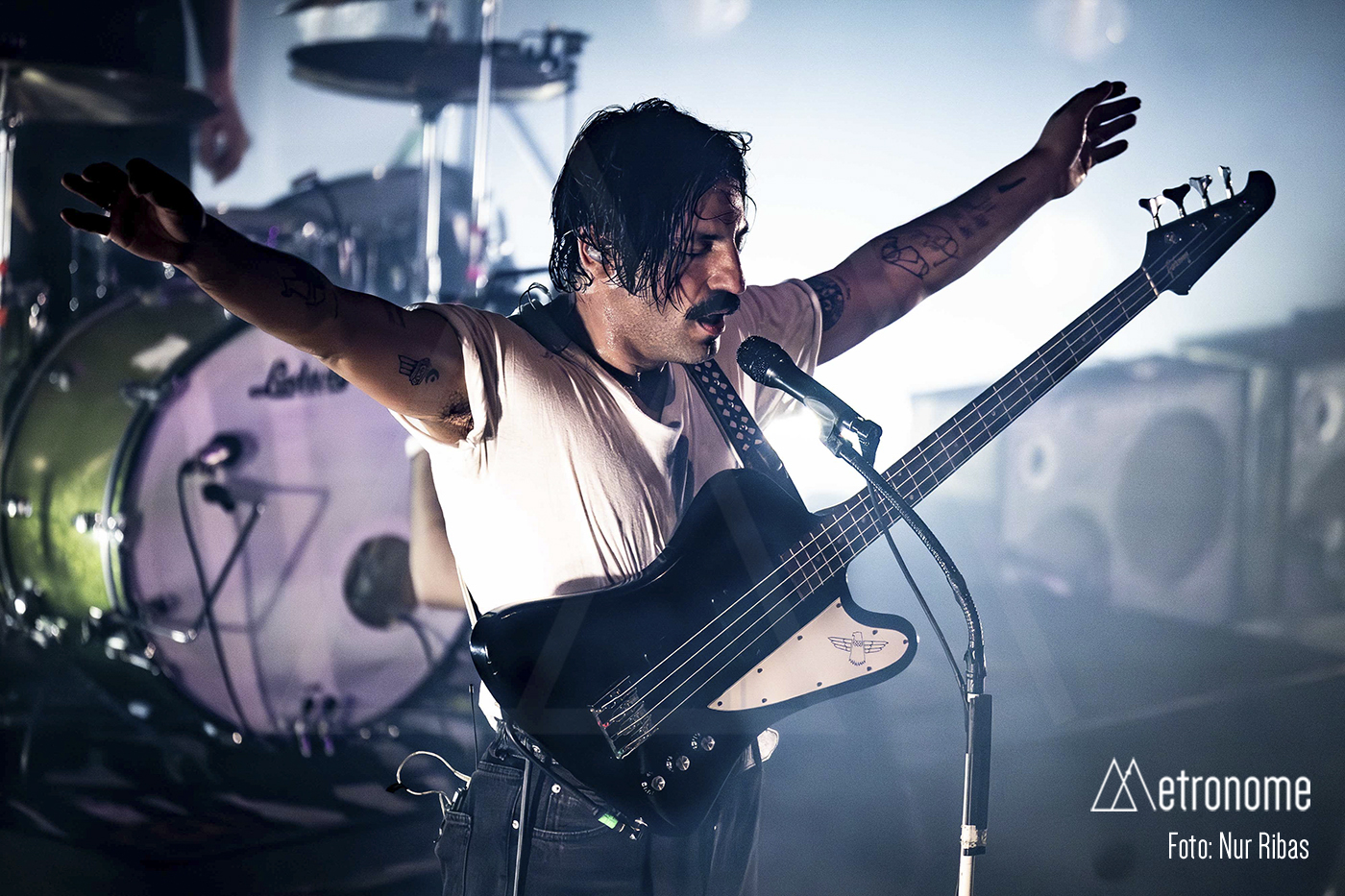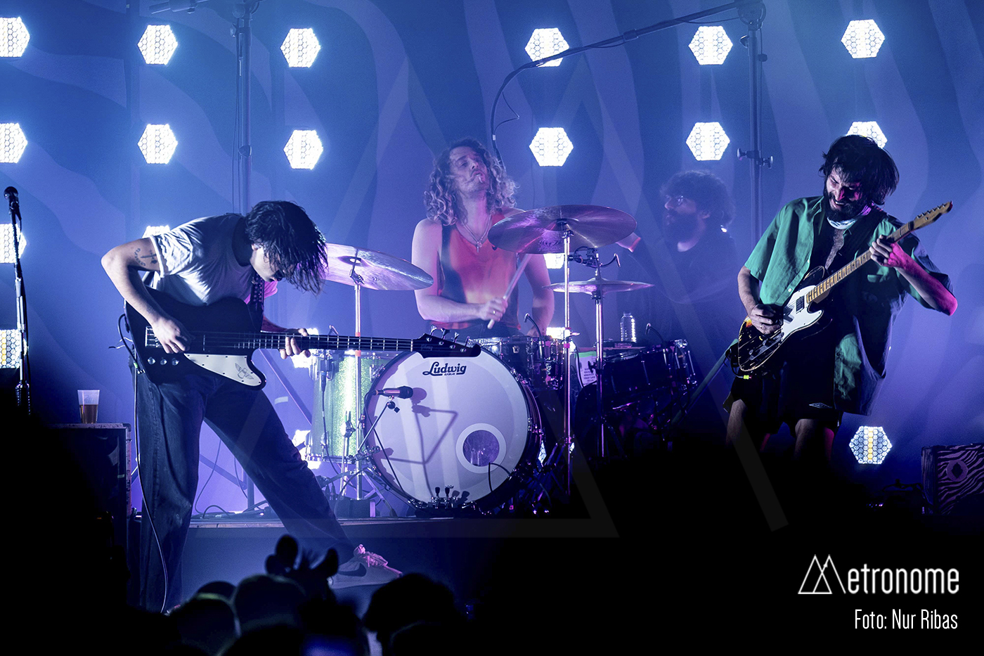 Sexy Zebras irrumpieron en el escenario con una intensidad arrolladora. Pese a estar únicamente compuestos por tres músicos, su sonido suena sorprendentemente compacto y potente, como si detrás hubiera una formación mucho más amplia. La química que existe entre ellos, junto a una ejecución perfecta, transformó su directo en un auténtico espectáculo de sonido que inundó de energía cada rincón de la icónica y abarrotada sala de la ciudad condal.