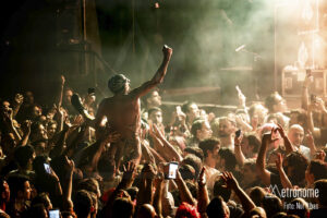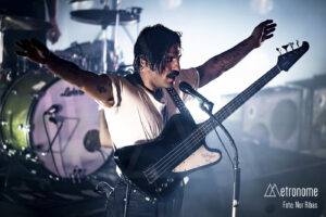 La intro instrumental fue casi un himno previo al caos controlado que vendría después. Arrancaron con “Bailaremos hasta la muerte” y el público comprendió entonces que la muerte no era el final, sino el principio de la fiesta. Seguidamente, la conexión fue inmediata. Gabi, vocalista y líder de la banda, lanzó un saludo de “buenas noches, Barna” y la respuesta fue un pogo desde la primera fila hasta el fondo de la sala. La declaración de intenciones era clara: una noche sin concesiones, sin pausa y con el público en el centro de todo.