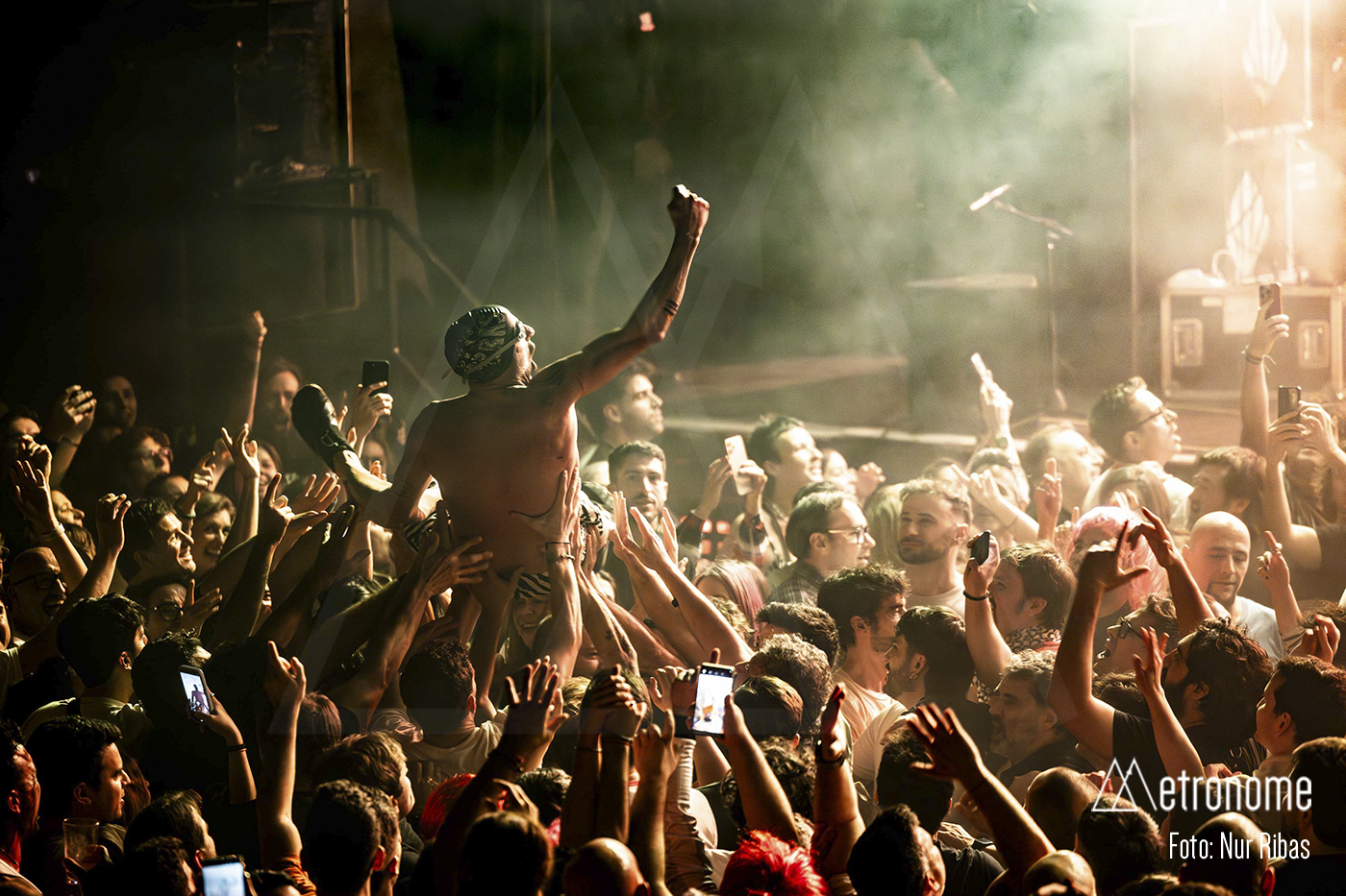 El pasado sábado 21 de febrero, la sala Razzmatazz de Barcelona acogió el broche final de esta exitosa gira ante un aforo completamente agotado. El concierto comenzó con unos minutos de demora, probablemente aguardando a los últimos asistentes que aún hacían cola a las puertas, mientras una música de fondo iba calentando el ambiente, anticipando lo que aquella marea humana estaba dispuesta a ofrecer: baile, saltos y cánticos sin tregua.