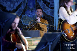 De hecho, el problema con la guitarra de Howe Gelb no fue un caso aislado. El “cable maldito”, como lo bautizó Maika, falló reiteradamente cada vez que alguien intentaba conectar una guitarra en él. A ello se sumaron otras complicaciones técnicas desde el principio: acoples molestos que se repitieron a lo largo de la noche o un balance irregular entre instrumentos —la batería demasiado presente en algunos momentos o la voz de Maika algo enterrada en otros—, por poner algunos ejemplos. Con tantos cambios sobre el escenario, sonorizar todo aquello no debió de ser tarea fácil. Por suerte para nuestros oídos, a medida que se fueron incorporando más instrumentos, el conjunto ganó en equilibrio y solidez. Eso sí, con una amplificación llevada al límite que quizá el Palau no soporta del todo bien.