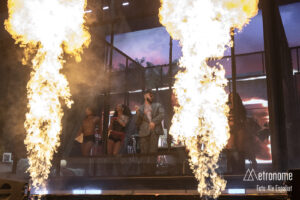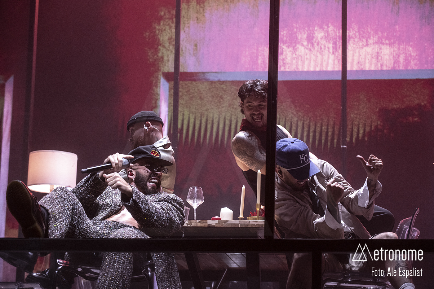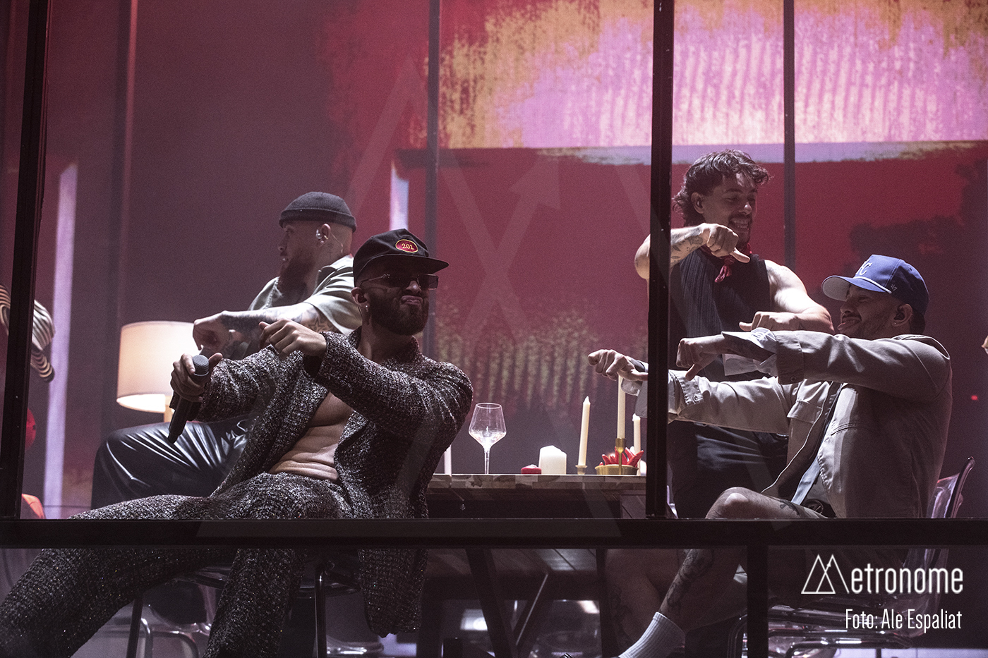 La espera se hizo amena entre risas, selfies y algunas coreografías improvisadas de sus canciones más famosas, como “Culpables” y “Te Olvido” mientras se acercaba a las 21.00, hora de la cual se esperaba que empezara el espectáculo. Eso si durante la espera se proyectaban en las pantallas del escenario (dos, una a cada lado) todo el intro de un rojo intenso que iluminaba todo el recinto. Al fondo se podía ver que la decoración era como una vivienda y como si estuviéramos mirando por las ventanas, cosa que no sorprendía porque muchos artistas actuales han cogido la misma escenografía.