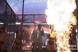 La mezcla de ritmos urbanos y letras románticas hizo que todos se movieran. Cada canción generaba más entusiasmo. En “Una Vez Más”, la atmósfera se tornó más íntima. Las luces bajaron, y Manuel llevó al público a un viaje más intimo y emocional. Con su voz llena de sentimiento, todos se perdieron en recuerdos y anhelos, mientras él repetía que aún había esperanza en el amor cantando tumbado en la cama.