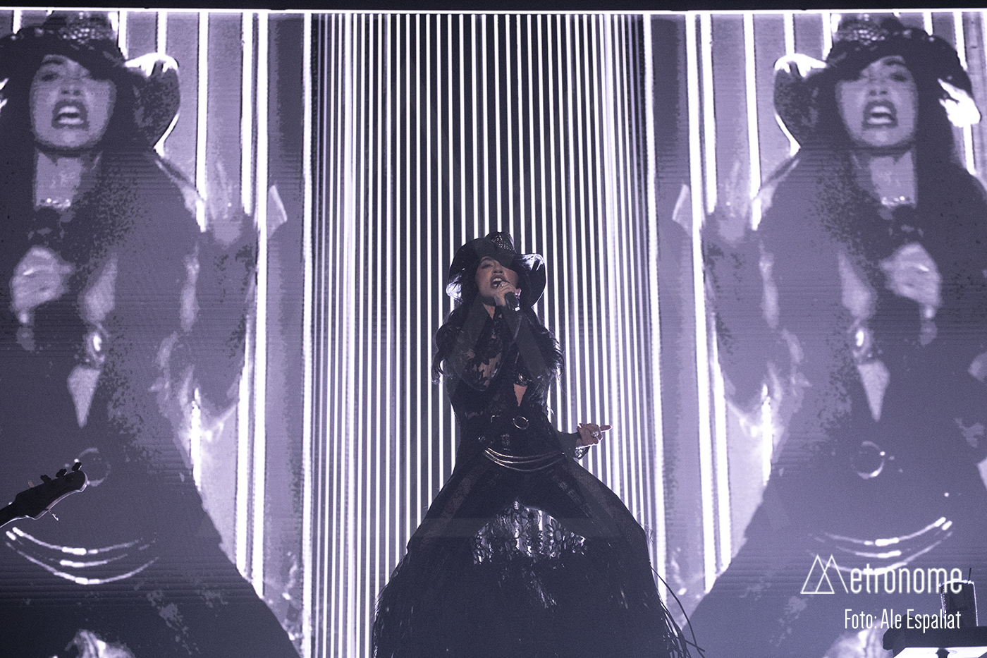 Llegando al sexto tema ocurre el primer cambio de vestuario que precedía al tema “Diva”, seguido por un breve lapso para recordar su paso por Barcelona hace unos tres años y contarnos que visitaba nuevamente la ciudad condal a presentar su nuevo álbum “No Vayas a Atender Cuando el Demonio Llama” (Sony Music Entertainment Argentina, 2025)